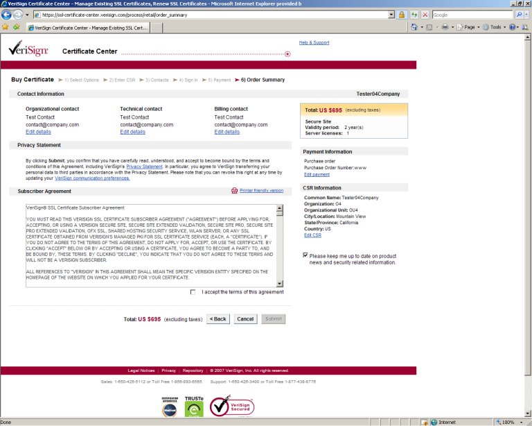 VeriSign Certificate Center (VCC) went live in July of 2007. A replacement for the CELP platform, VCC has many advantages that make it better for the SSL Certificate user and better for VeriSign, among them:
